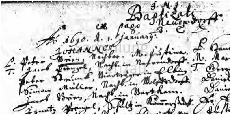 Der erste Eintrag von 1690 über die Geburt von Johannes aus