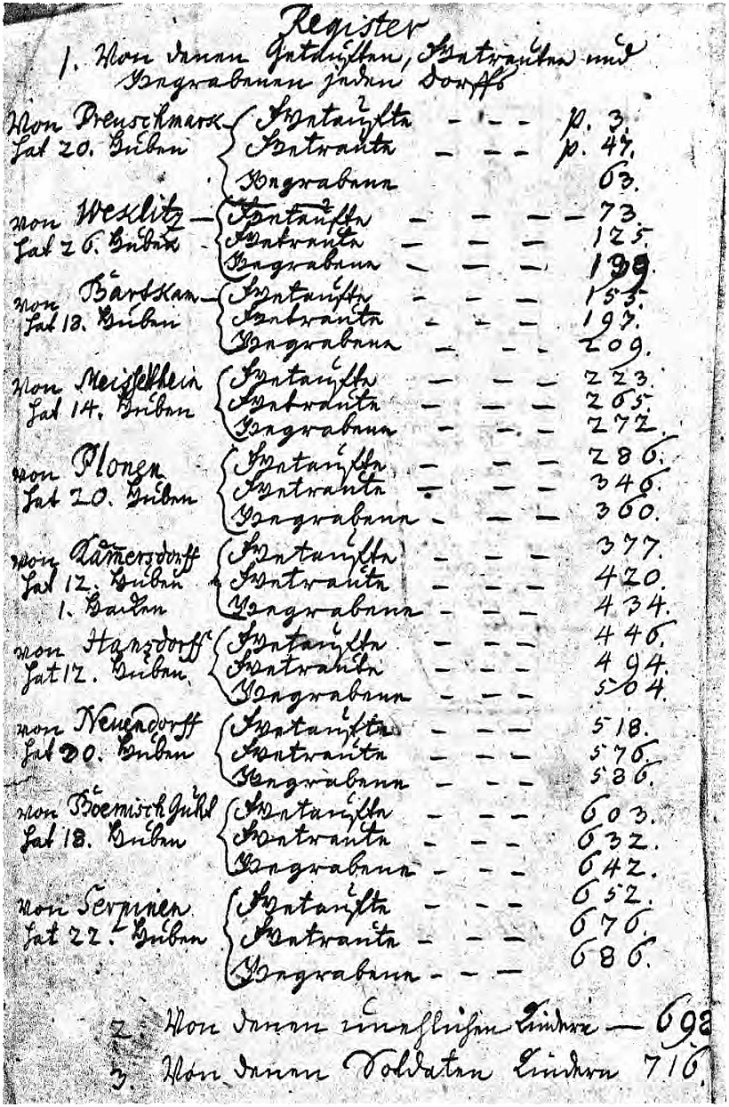 Register der Gemeinden im Kirchenbuch Preussisch Mark (1766)